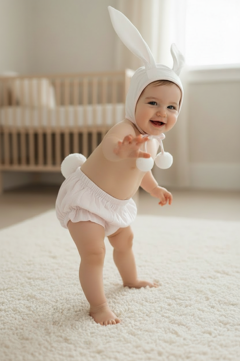 - Detachable pom-pom on the back of the bloomers, making it useable for sleep time and reusable with any other outfit